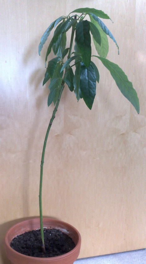 Dass die Avocado-Pflanze in unseren Breiten keine Früchte tragen wird, habe ich mir fast gedacht, allerdings meine ich in irgendeinem Internet-Forum einmal gelesen zu haben, dass es „möglich“ ist, auch bei uns Früchte zu erhalten. Naja, wir werden sehen.