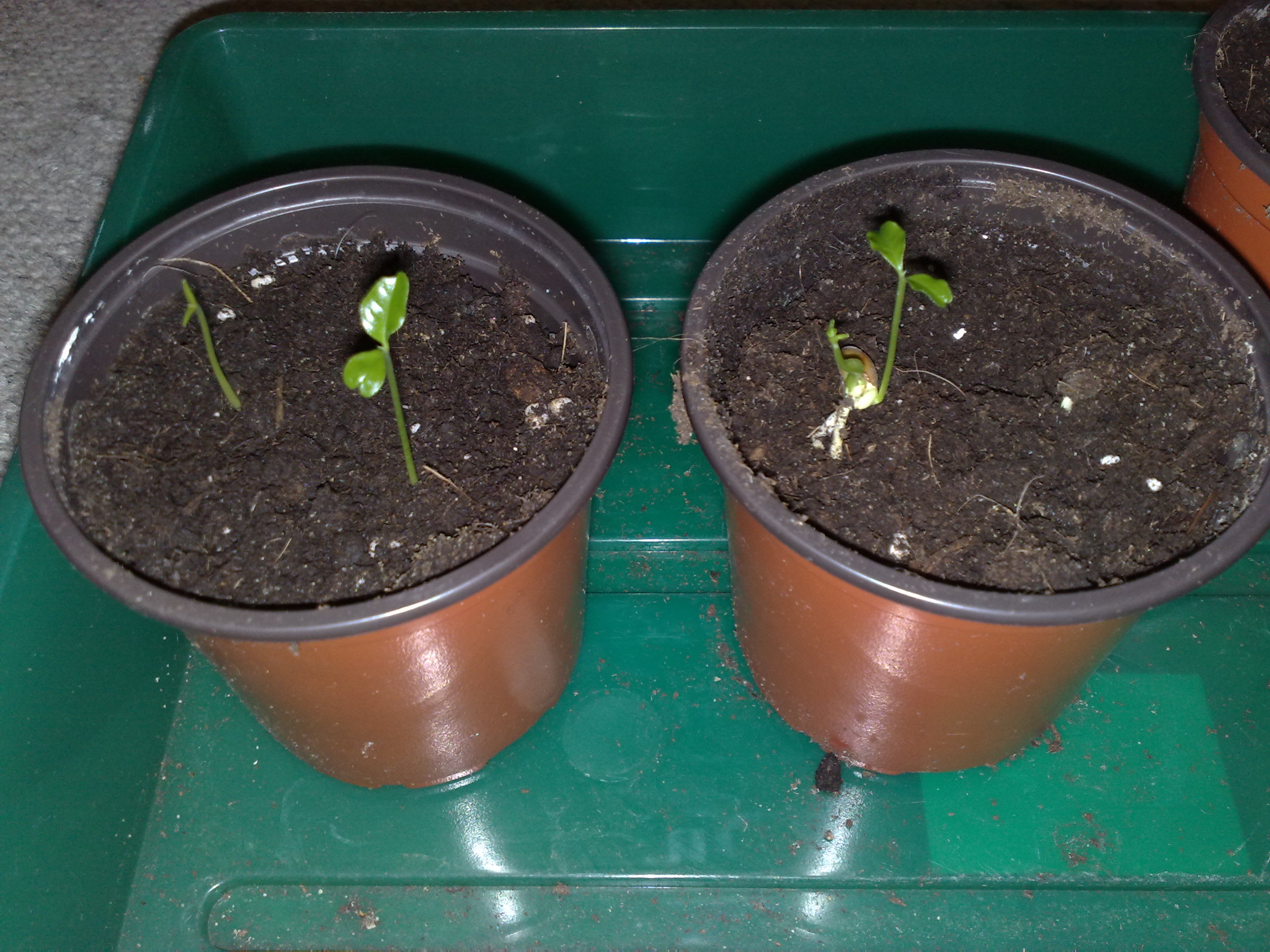 Die Aussaat der Blutoragen war am 07.01.2011. Mittlerweile sind vier von sieben Kernen gekeimt. Die restlichen drei Kerne sind wohl Blindgänger. Ein deutliches Wachstum ist im Vergleich zum ersten Bild bereits zu erkennen. Interessant: Der polyembryonische Kern hat sich nun komplett entfaltet. Bin sehr auf die weitere Entwicklung dieser Pflänzchen gespannt. Einen angenehmen Geruch verbreiten sie ja schon.
