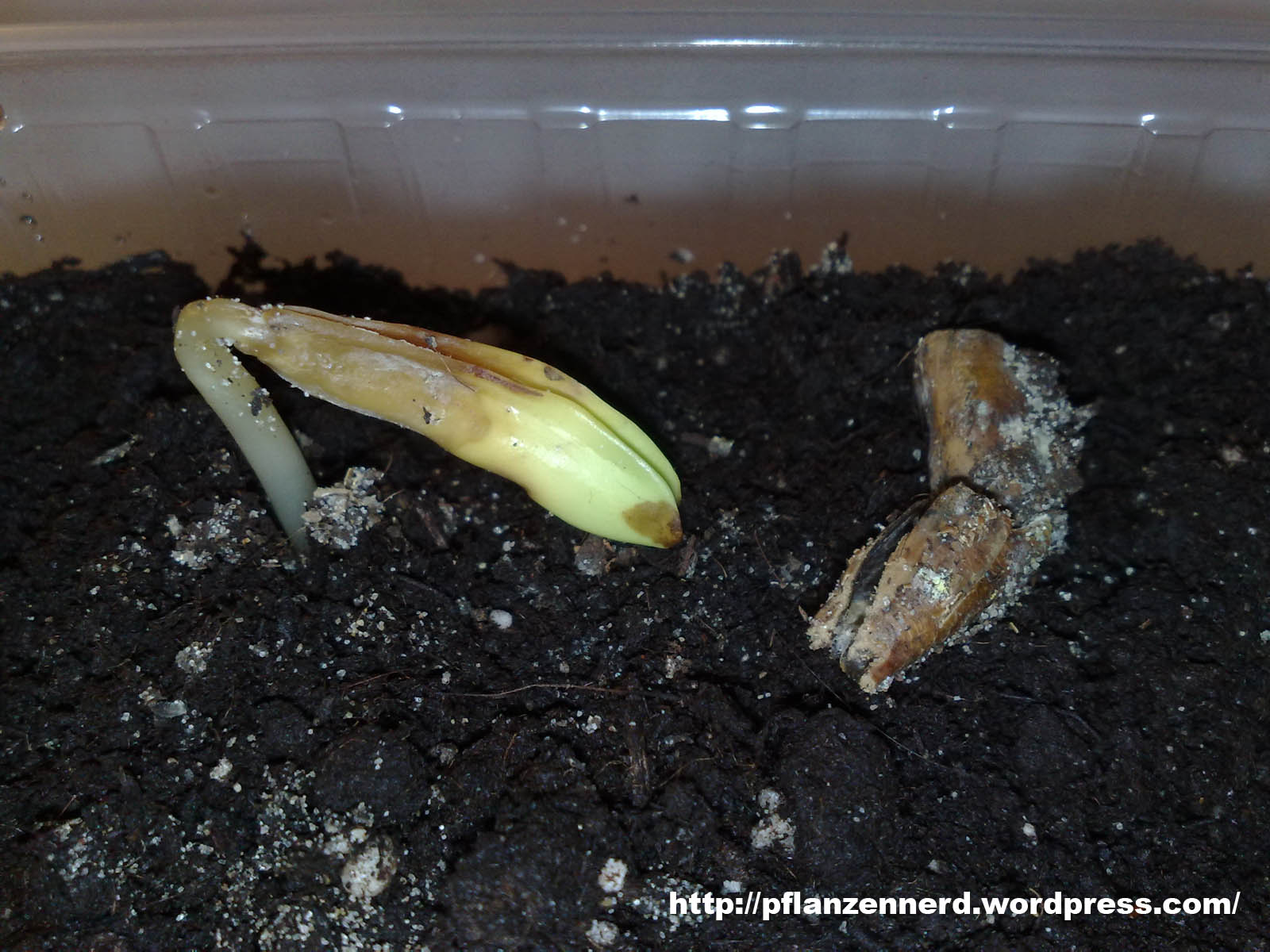 Was war passiert? Die Samenhülle, welche immernoch die Keimblätter umschloss, hat sich entgegen meiner Erwartungen doch nicht von allein gelöst. Auf Grund der hohen Luftfeuchtigkeit fing diese nun zu allem Überfluss an zu faulen und „infizierte“ den Flamboyanttrieb. Habe nun jegliche Reste der Samenhülle komplett entfernt, allerdings ist die Fäulnis am Pflänzchen zu weit fortgeschritten, als dass dort noch Hoffnung besteht. Der nächste Flamboyant wird sicherlich in den nächsten Tagen die Erdoberfläche durchdringen. Diesmal werde ich nicht warten, bis die Samenhülle von allein abfällt – denn aus Fehlern lernt man..