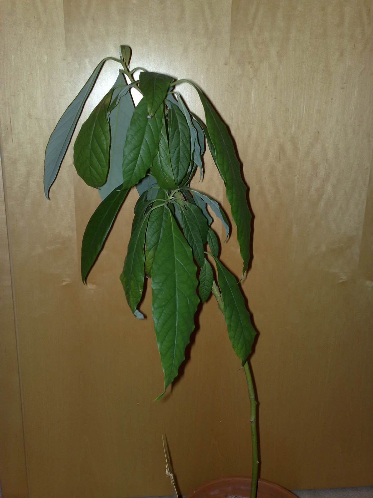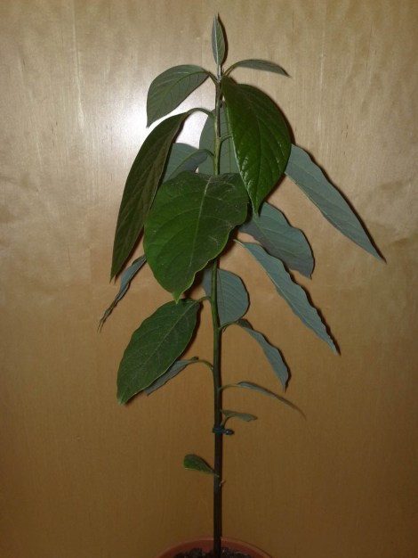 Parallel zum ersten Kern wurde auch der Kern gepflanzt, aus dem meine erste diesjährige Avocadopflanze gekeimt ist. Die Höhe hat sich mittlerweile bei knapp 50cm eingependelt. Momentan scheint die Pflanze mehr Kraft ins Blattwachstum zu investieren. Die Spitze wurde und wird nicht abgeschnitten. Die Verzweigung soll ohne jegliches Eingreifen erfolgen.