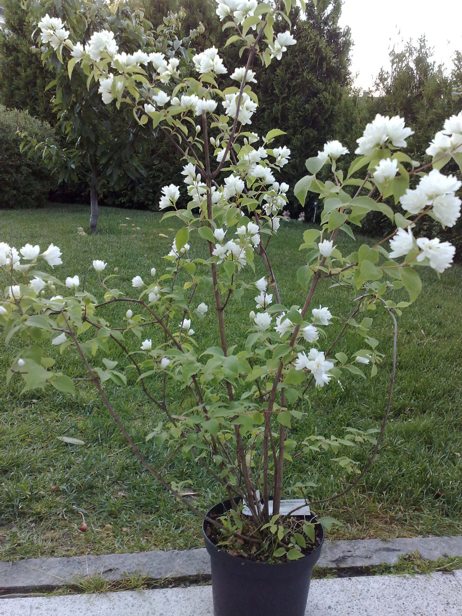 Da fährt man zum Baumarkt, mit der Absicht 3 Thujen zu kaufen, um die unlängst vertrockneten zu ersetzen und findet alles, nur keine Thujen, wie man sie gewohnt ist. Lediglich 40cm-Winzlinge in Töpfen gab es. Von den gewohnten 80cm Pflanzen im Ballen noch keine Spur. Nunja, da heissts wohl warten, bis es im Herbst wieder welche im Angebot gibt. Leider wird der Größenunterschied zu den bereits vorhanden Pflanzen dann noch gravierender ausfallen – aber was will man machen.. Ist kein Beinbruch. Schließlich fand noch ein wunderschöner Pfeifenstrauch (Philadelphus ‚Virginal‘, auch bekannt als Bauernjasmin, falscher Jasmin, Sommerjasmin) den Weg in den Einkaufswagen. Der letzte seiner Art. Quasi vom Restetisch fürn Fünfer. Da kann man doch echt nicht meckern – obendrein riecht er noch lecker! Stellt sich nur noch die Frage, wo er nun hinkommt. Ich dachte an den Vorgarten. Aber dafür war schon ein Schneeball eingeplant.