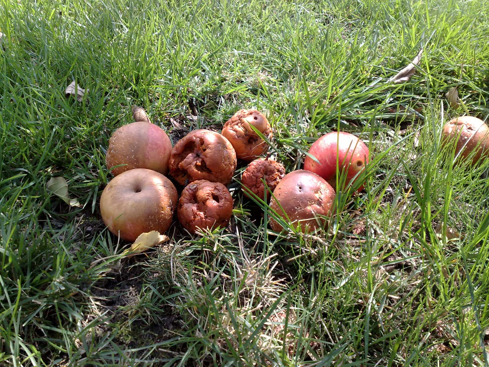 Die Apfelernte wird dieses Jahr ein Reinfall werden. Die überwiegende Anzahl der Äpfel ist wurmstichtig, faul oder bereits als Fallobst zu Boden gefallen. Es handelt sich übrigens um Cox Orange. Die wenigen Äpfel, die schon/noch essbar waren, schmeckten vorzüglich – wenn auch etwas sauer.