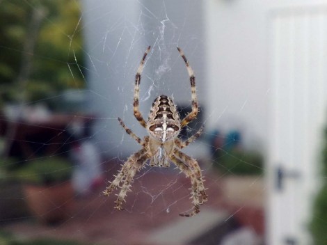 Jetzt weiss ich wenigstens, was das fuer Viehcher sind, in deren Netze ich jeden Tag gleich mehrfach hineinlaufe. Alle Gebaeude, alle Schuppen, jeder Tierstall haengst voll damit.