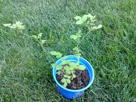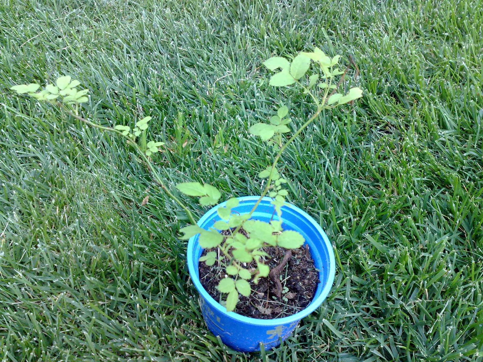 Wieder mal ein Wildgewächs, das ich beim Unkrautjäten aus dem Unterholz zog. Es handelt sich hierbei tatsächlich um eine kleine Rose. Keine Ahnung welche Art. Ich denke mal dass sich der Samen über Vogelkot verbreitete. Fand letztes Jahr schon einen solchen Sämling, allerdings war dieser von Anfang an mit Mehltau übersät, woran er schließlich zu Grunde ging.