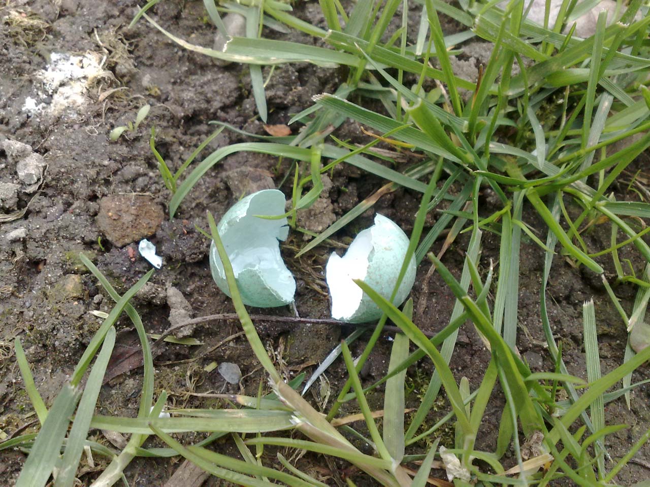 Was ich neulich im Garten fand, stimmte mich ein wenig stutzig: Mehrere leere, zerborstene Amseleier, mitten auf der Wiese. Erst ging ich davon aus, dass die Eierschalen von frisch geschlüpften Küken stammten. Diese Vermutung hätte unter einem Baum oder Strauch mit einem Nest in unmittelbarer Nähe sicherlich Sinn gemacht. Aber mitten auf der Wiese, weit und breit kein Nest in der Nähe?