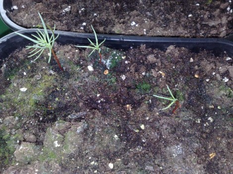 ..wenn auch nicht viele. Aber meine anfänglichen Zweifel an den Bergmammutbaumsamen sind mittlerweile doch ein wenig abgeschwächt. Drei Sämlinge sind nun mehrere Tage bis zwei Wochen alt und noch nicht eingegangen. Ein vierter Sämling sproß während der letzten Tage noch in der ersten Aussaatschale von Februar. Man sieht, es kann sich durchaus nach langer Zeit noch etwas tun. Vielleicht keimt auch noch der ein oder andere weitere Samen, aber ich will ja nicht zu anspruchsvoll sein. Es besteht also doch noch ein Lichtblick, immerhin bei den Mammutbäumen nicht leer auszugehen. Nachdem im letzten Jahr bereits die drei einzigen überlebenden Bäume auf Grund mieserabler Witterungsbedingungen dahinschieden, werde ich auf die aktuellen Sämlinge ein wenig mehr Acht geben.