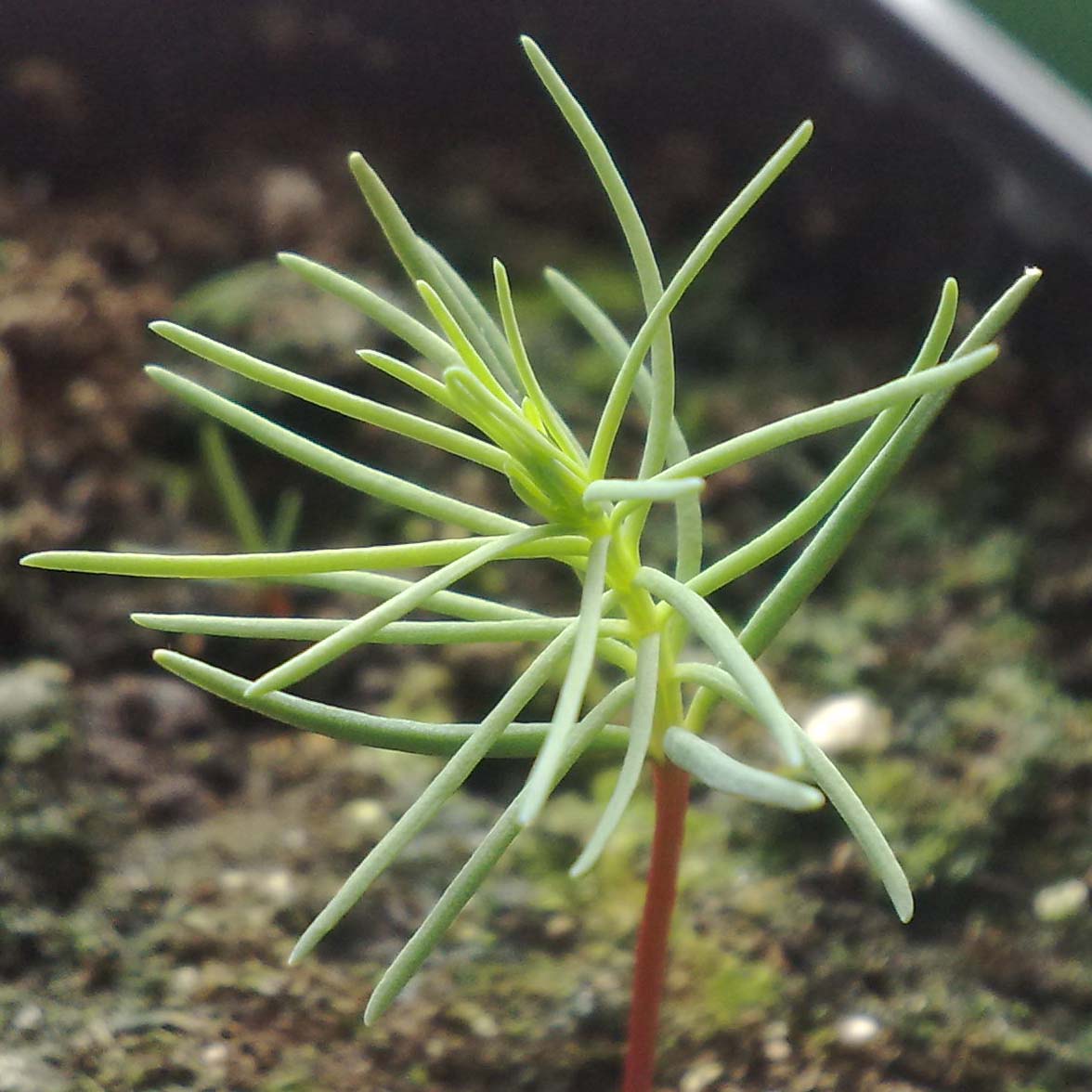 Das Bild zeigt übrigens einen der wenigen gekeimten Bergmammutbäume, ca. 5 Wochen nach der Keimung.