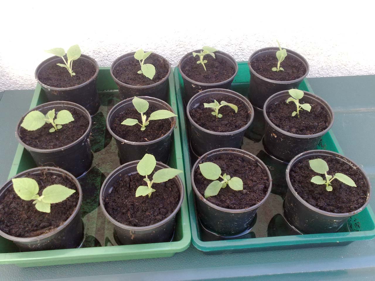 Lange Zeit schob ichs auf , heute ist es geschehen: endlich kam ich dazu, meine Kiwisämlinge zu pikieren. Zwölf an der Zahl, um genauer zu sein. Auch wenn sicherlich noch viele andere vitale Sämlinge ein Anrecht auf einen eigenen Topf hätten. Doch weiteres hätte sicher den Rahmen gesprengt, also entschied ich mich für diese schöne, runde Zahl. Als Substrat verwendete ich „Pflanzerde“ im 60l Sack der Bauhaus-Eigenmarke. Ein Produkt, mit dem ich bereits gute Erfahrungen machte und durchaus für viele Zwecke weiterempfehlen kann. Mit entsprechenden Beimischungen (Sand, Lehm, Blähton) lassen sich auch recht zufriedenstellende Spezialsubstrate wie Kakteenerde oder Zitronenerde mischen. Für die Kiwis nutze ich die pure Erde, wie sie aus dem Sack kam – ohne jegliche Zusatzsstoffe. Bei der weiteren Kultivierung richte ich mich vorerst grob nach der Anleitung auf tropenland.at, eh ich eigene Erfahrungen gesammelt habe.