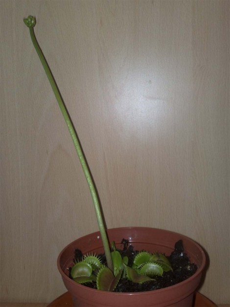Ob diese Theorie allerdings tatsächlich mit dem Blühverhalten der Venusfliegenfalle zusammenhängt, ist doch sehr fraglich, da mir die ersten Anzeichen des Bütentriebes bereits auffielen, als die Pflanze noch draußen stand. Was gegen Mitte/Ende Oktober gewesen sein muss.
