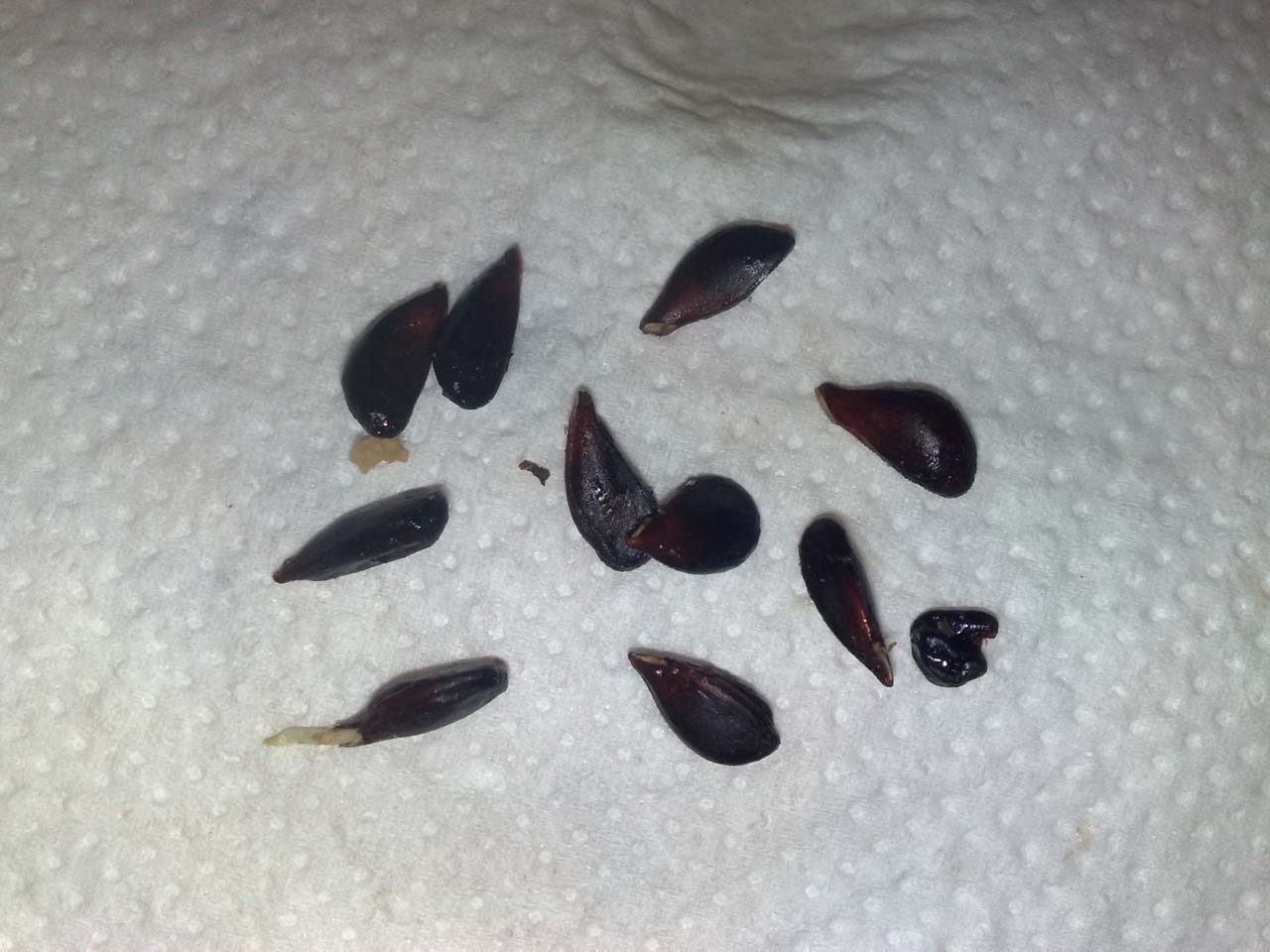 Natürlich konnte ich mich nicht zurückhalten und musste die Samen umgehend einpflanzen. Aufs Stratifizieren verzichtete ich bewusst. Wenn es möglich ist, dass ein Samen innerhalb der Frucht bereits eine 5mm lange Wurzel bildet, sollte es zumindest nicht unmöglich sein, dass die anderen Samen im Anzuchtsubstrat keimen könnten. Sollte ich mich irren, bleibt mir – hoffentlich – noch der bereits gekeimte Samen.