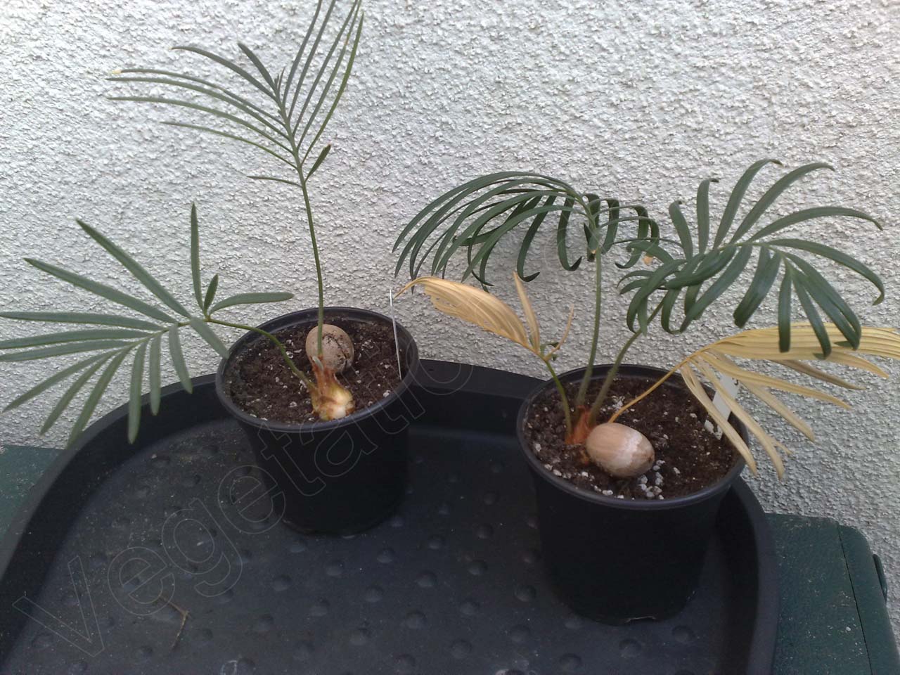 Leider hat eine Pflanze während der letzten Monate zwar zwei Wedel eingebüßt, doch sind im Herzen der Pflanze bereits neue Triebe zu erkennen. Die neuen Wedel der zweiten Pflanze sind sogar schon mit bloßem Auge sichtbar und dürften sich wohl in den nächsten Wochen entfalten.