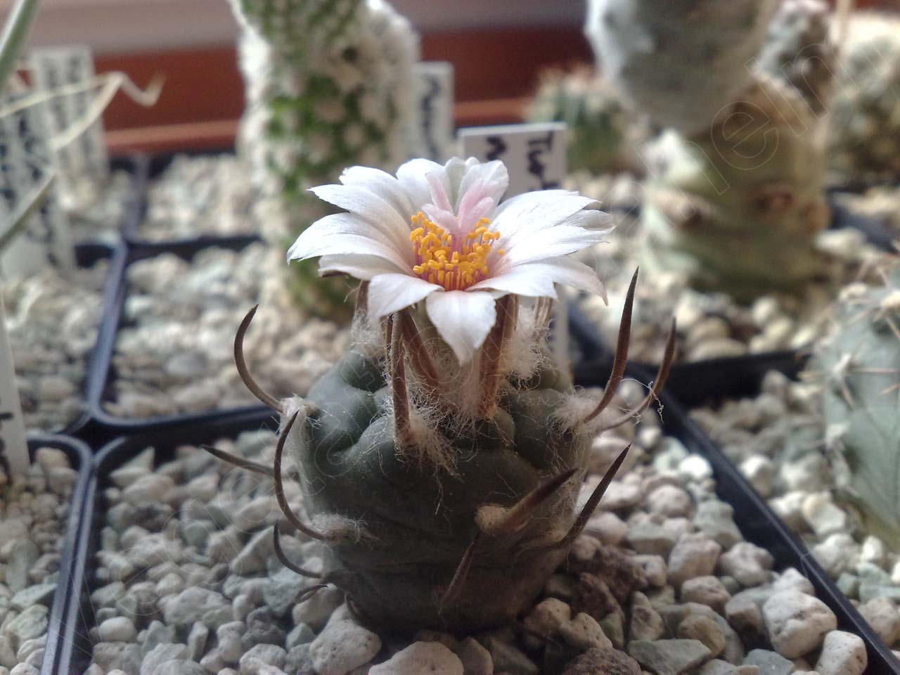Seit knapp vier Wochen beobachte ich nun aufmerksam die Entwicklung der Knospen an meinen Kakteen. Mein kleiner Turbinicarpus macrochele machte den Anfang und erblühte bereits vorletzte Woche in einem strahlenden weiß. Nicht unbedingt spektakulär, doch geht der Bonus des Erstblühenden definitiv an diese Pflanze.