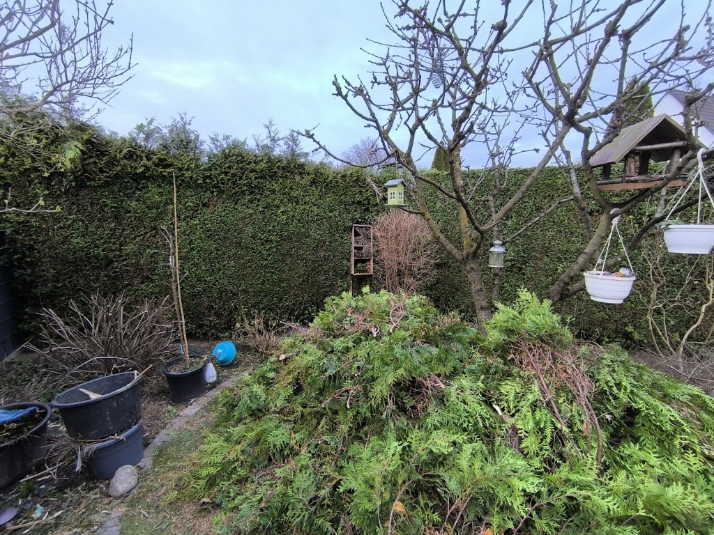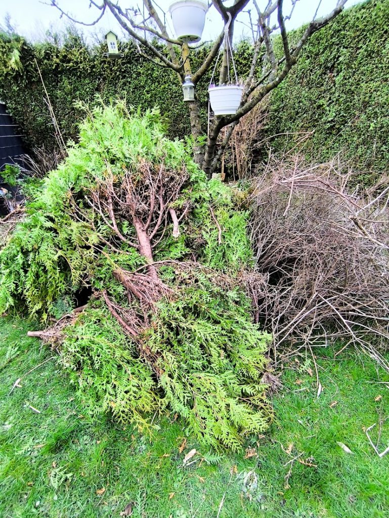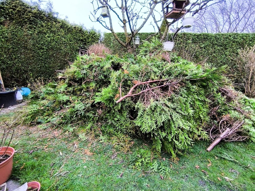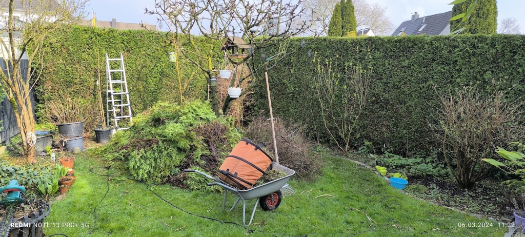 Nachdem ich den Vorgarten vor 3 Wochen ziemlich radikal auslichtete, wollte ich mich an die Hecken im hinteren Teil des Gartens begeben. Leider erwischte mich währenddessen Corona so hart, dass mein Körper mir einen massiven Strich durch die Rechnung machte und ich maximal Energie hatte, um das Bett zu verlassen. Glücklicherweise sprang der Nachbar an der Kettensäge ein und kürzte die Hecke für mich entsprechend, so dass ich nur noch den Feinschliff mit der Motorschere tätigen musste.