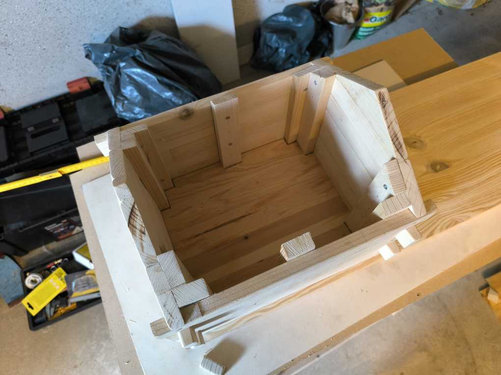 Vor einigen Jahren baute ich bereits ein Futterhaus, das tatsächlich bis Anfang des Jahres im Einsatz war und über die Jahre sehr zuverlässig seine Dienste im Kirschbaum tat. Es war eine recht rohe und simple Konstruktion aus Ästen und Leimholz, die ich damals in relativ kurzer Zeit improvisierte und nahezu ausschließlich mit Handwerkzeugen anfertigte.